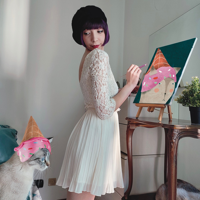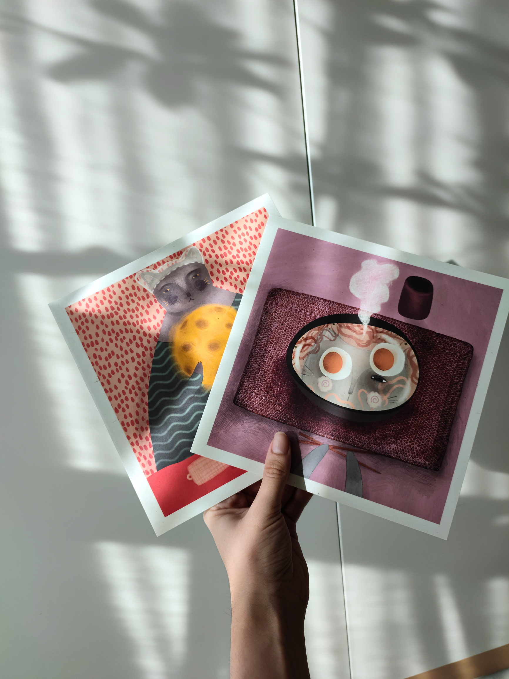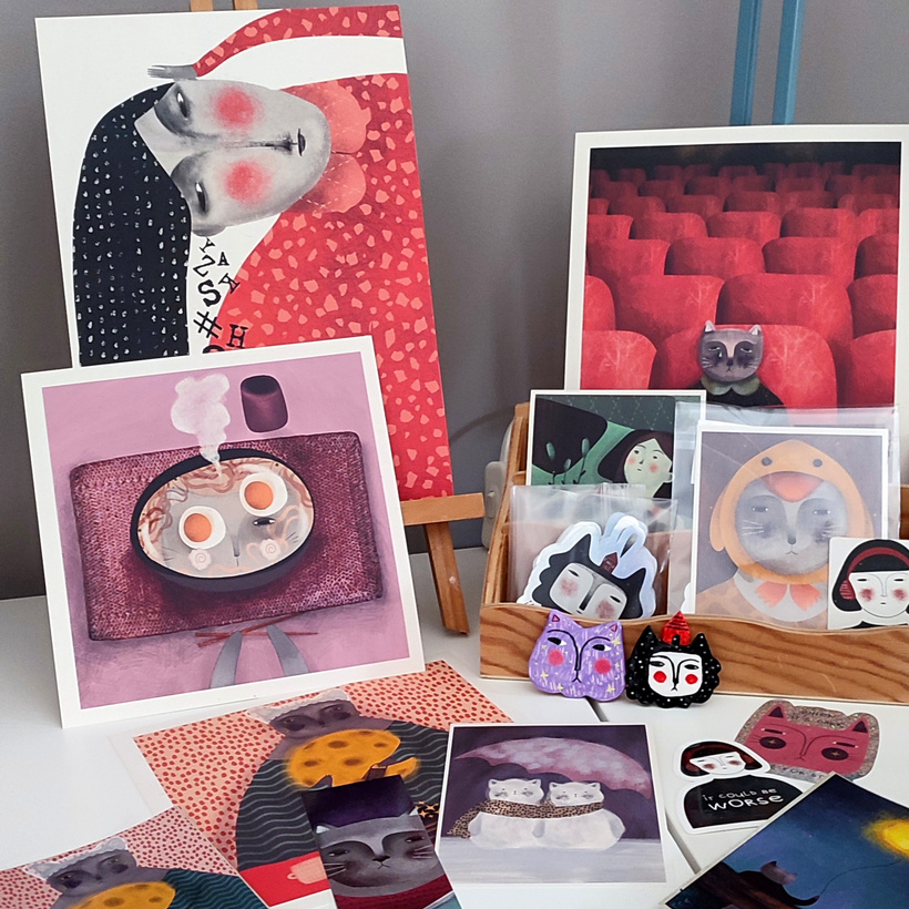 I work as a freelance illustrator for private clients and businesses. I have two personal projects: one is a creative studio that offers custom designs for events, and the other is my business as a craftswoman, where I sell illustrated prints and merchandise at markets and illustration fairs. My prints, as I also specialize in animations, are interactive, and I use this skill to create highly original projects for my clients as well.